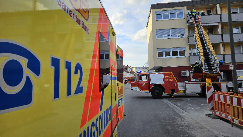 Fahrzeugaufgebot   Kommandowagen (KdoW)  Einsatzleitwagen (ELW 1)  Hilfeleistungslöschgruppenfahrzeug 1 (HLF 1)  Drehleiter (DLK 23/12)