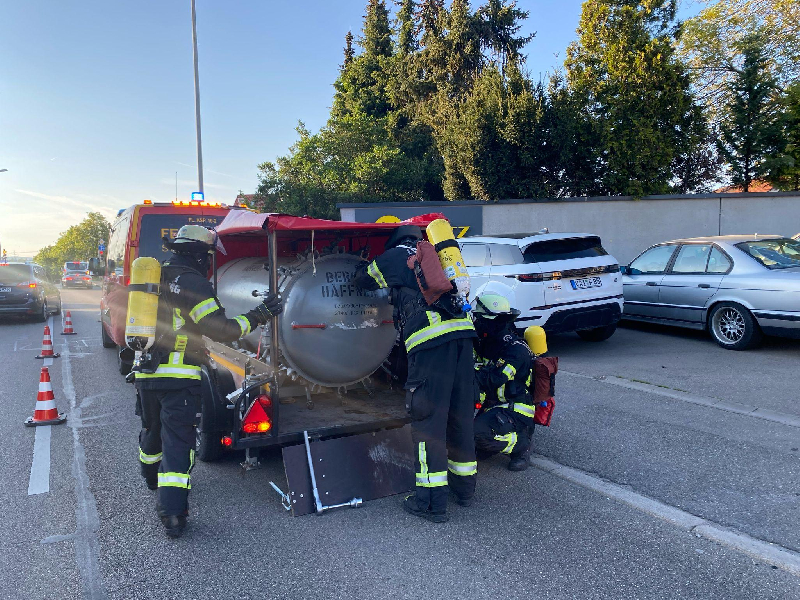 Fahrzeugaufgebot   Mannschaftstransportwagen 2 (MTW)  Anhänger mit Druckgas-Bergebehälter