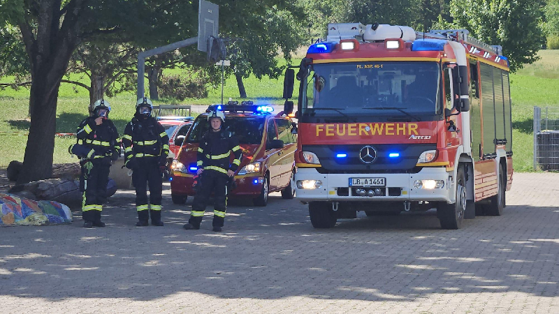 Fahrzeugaufgebot   Kommandowagen (KdoW)  Einsatzleitwagen (ELW 1)  Hilfeleistungslöschgruppenfahrzeug 1 (HLF 1)  Hilfeleistungslöschgruppenfahrzeug 2 (HLF 2)  Drehleiter (DLK 23/12)