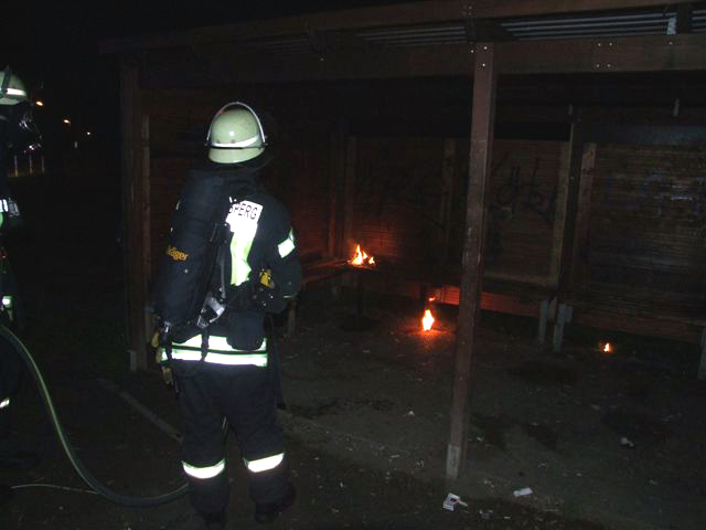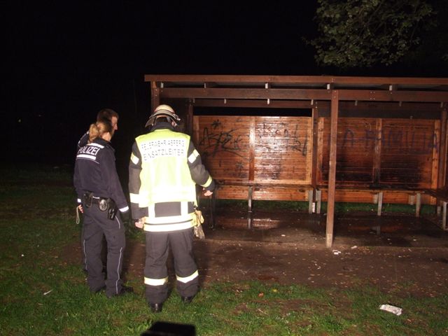 In der Nacht von Samstag auf Sonntag wurde die Feuerwehr Asperg zu einem Kleinbrand auf dem öffentlichen Spielplatz "Hutwiesen" an der Möglinger Straße alarmiert. Beim Eintreffen der Feuerwehr Asperg brannten Teile der Holzverkleidung eines Aufenhaltshäuschens für Jugendliche. Das Feuer wurde mittels "Schnellangriff-Wasser" durch die Einsatzkräfte der Feuerwehr Asperg abgelöscht. Da die Polizei Ermittlungen zum Brandhergang einleitete wurde zusätzlich ein Beleuchtungsstativ in Stellung gebracht.