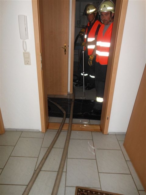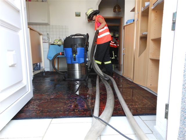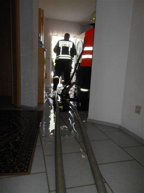 Am Donnerstag wurde die Feuerwehr Asperg von der Leitstelle Ludwigsburg in die Jagststraße alarmiert. Bewohner einr Doppelhaushälfte meldeten über Notruf 112 einen hausinternen Wasserrohrbruch. Beim Eintreffen der Einsatzkräfte stand im Erdgeschoß das Wasser auf eine Fläche von rund 100m² bereits 10cm hoch. Eine bettlegrige, an medizinische Geräte angeschlossene Bewohnerin, befand sich im Erdgeschoß. Da das Haus umgehend stromlos geschalten werden musste, forderte der Einsatzleiter einen Rettungswagen zur Betreuung der Person an. Insgesamt kamen bei den Absaugmaßnahmen vier Wassersauger zum Einsatz. Die Einsatzstelle wurde abschließend den Eigentümern übergeben. Eine Installationsfirma und ein Elektriker wurden verständigt.