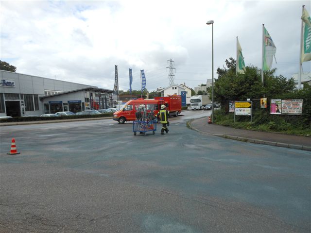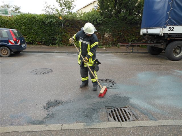 Am Donnerstag wurde die Feuerwehr Asperg zu einer Dieselspur in die Neckarstraße alarmiert. Nach Erkundung durch den Einsatzleiter stellte sich heraus, dass sich die Dieselspur von der Neckarstraße in die Filsstraße zur Einmündung Rheinstraße erstreckte. Im unmittelbaren Gefährdungsbereich wurde die Dieselspur mittels Ölbindemittel durch die Einsatzkräfte der Feuerwehr Asperg abgestreut. Paralell wurden Ölspurwarnschilder gestellt. Im Anschluß an die von der Feuerwehr Asperg durchgeführten ersten Sicherungsmaßnahmen wurde die verschmutzte Fahrbahn mittels Fahrbahntiefenreinigungsmaschine von einer Spezialfirma gesäubert. Während der Abstreumaßnahmen kam es in den betroffenen Bereichen zu Verkehrsbehinderungen. Die Polizei leitete Ermittlungen zur Verunreinigung ein.