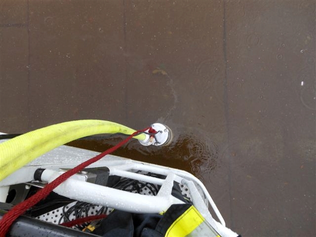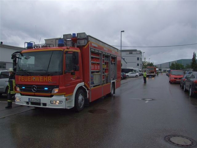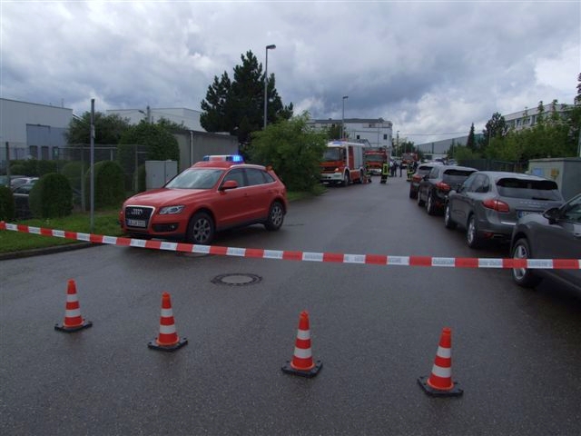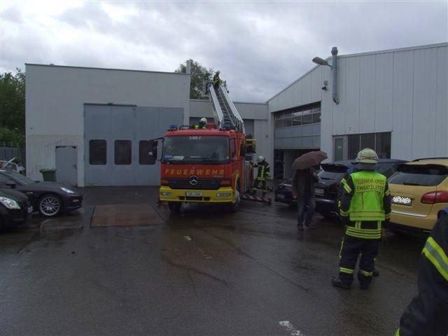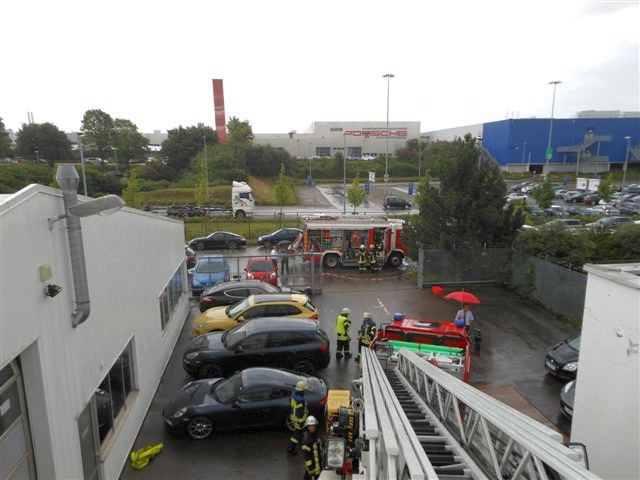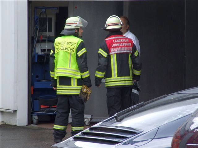 Am Freitag wurde die Feuerwerhr Asperg mit dem Einsatzstichwort "Einsturzgefahr Gebäude" zu einer Automobilfirma in die Heckenwiesen alarmiert. Gemäß Alarm- und Ausrückeordnung wurde automatisch die Drehleiter und der Rüstwagen der Feuerwehr Ludwigsburg mitalarmiert. Nach Erkundung durch den Einsatzleiter stellte sich heraus, dass das Flachdach einer Halle auf eine Fläche von rund 100m² eingegnickt war und einzustürzen drohte. Personen die sich in der Halle befanden, wurden bereits bis zum Eintreffen der Feuerwehr von dem Werkschutz der Firma evakuiert. Umgehend wurde eine großflächige Sperrzone von der Feuerwehr eingerichtet. Nach einer weiteren Erkundung über die Drehleiter stellte sich heraus, dass auf dem Flachdach der Ablauf verstopft war und Regenwasser rund 60cm hoch auf die komplette Dachfläche stand. Mittels Tauchpumpe wurde das Wasser umgehend abgepumt um die Last auf das beschädigte Dach zu veringern. In Absprache mit der Firmenleitung wurde ein Statiker und eine Spezialfirma verständigt um das weitere Vorgehen und eine Reparatur zu koordinieren. Die Einsatzstelle wurde, nachdem ein drohender Einsturz ausgeschlossen werden konnte, an die Firmenleitung übergeben. Ein Bild von der Einsatzstelle vor Ort machte sich der Kreisbrandmeister des Landkreises Ludwigsburg. Ebenfalls vor Ort war die Polizei mit mehreren Streifen.
