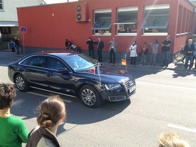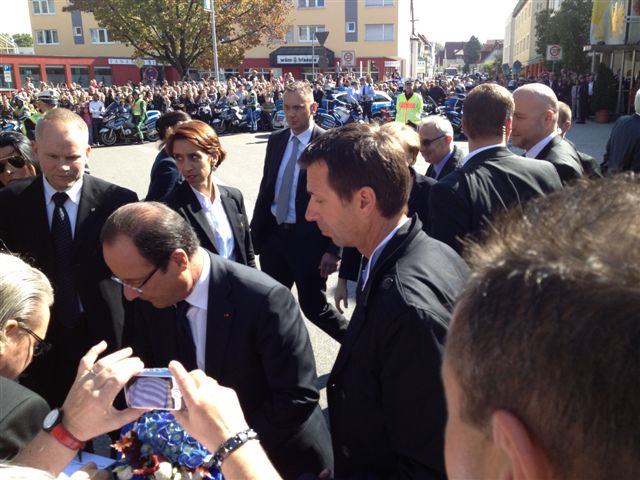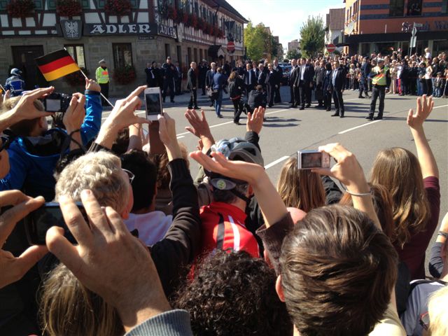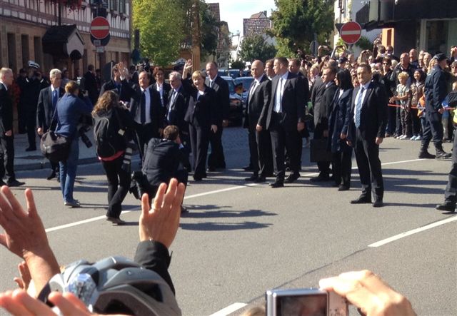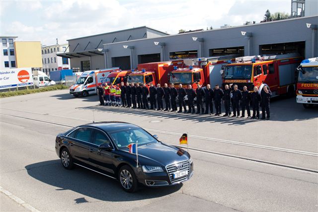 Am Samstag stellte die Feuerwehr Asperg während des gemeinsamen Mittagessen und der anschließenden Pressekonferenz von Bundeskanzlerin Angela Merkel und dem französischen Staatspräsidenten Francois Hollande im Hotel Adler in Asperg einen Löschzug zu Absicherung. Während dieser Zeit wurde der in Bereitstellung stehende Asperger Löschzug von einem Rettungswagen ergänzt. Bundeskanzlerin Angela Merkel und der französiche Präsident Francois Hollande grüßten im Vorbeifahren die vor der Feuerwache Asperg angetretene Wachabteilung. Der Einsatzleiter der Feuerwehr Asperg stand mit einem Fahrzeug am Hotel Adler vor Ort.