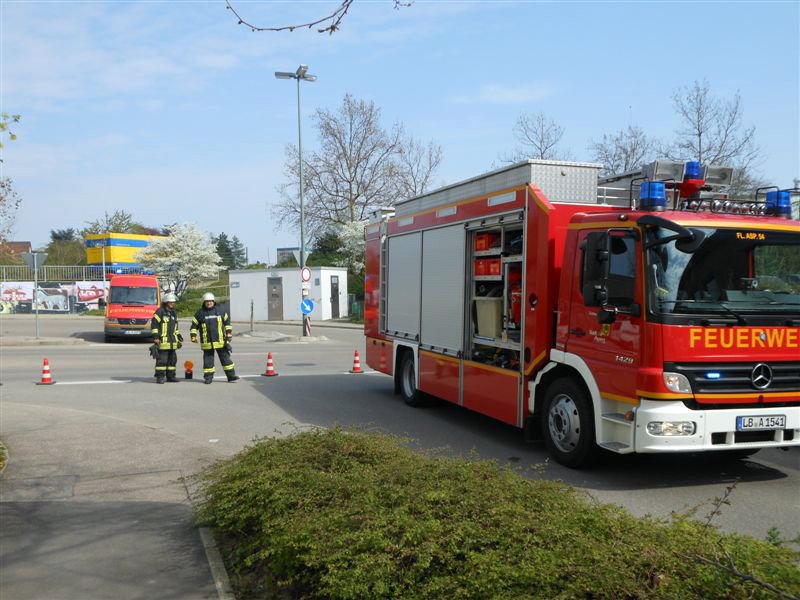 Fahrzeugaufgebot   Einsatzleitwagen (ELW 1)  Gerätewagen Gefahrgut (GW-G)  Löschgruppenfahrzeug (LF 16/12)  Gerätewagen Logistik (GW-L 1) (a.D.)  Kleineinsatzfahrzeug (KEF) (a.D.)
