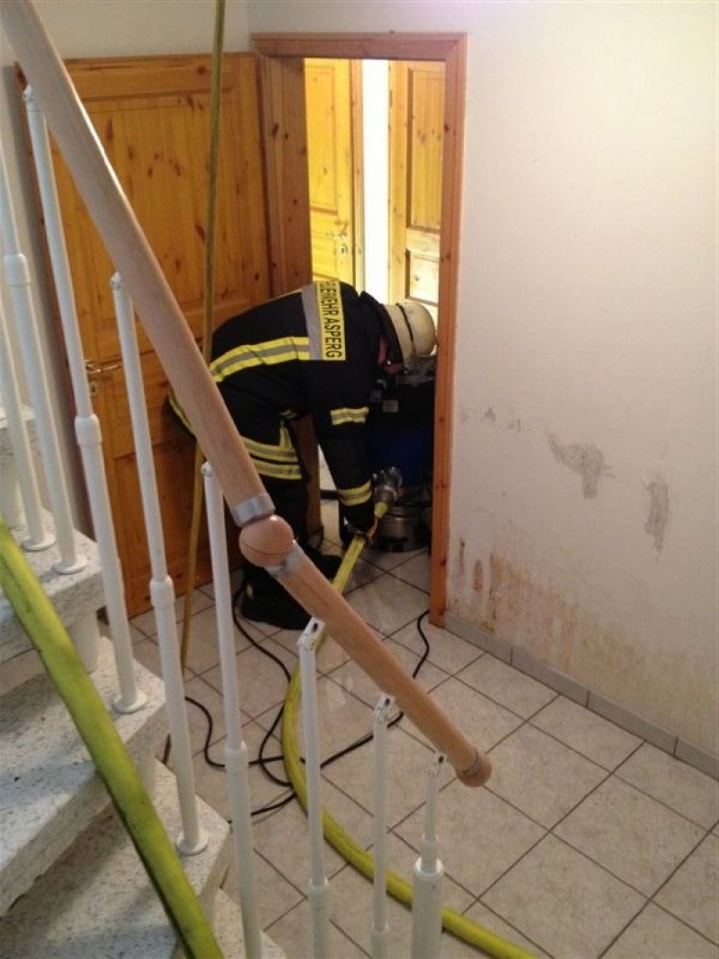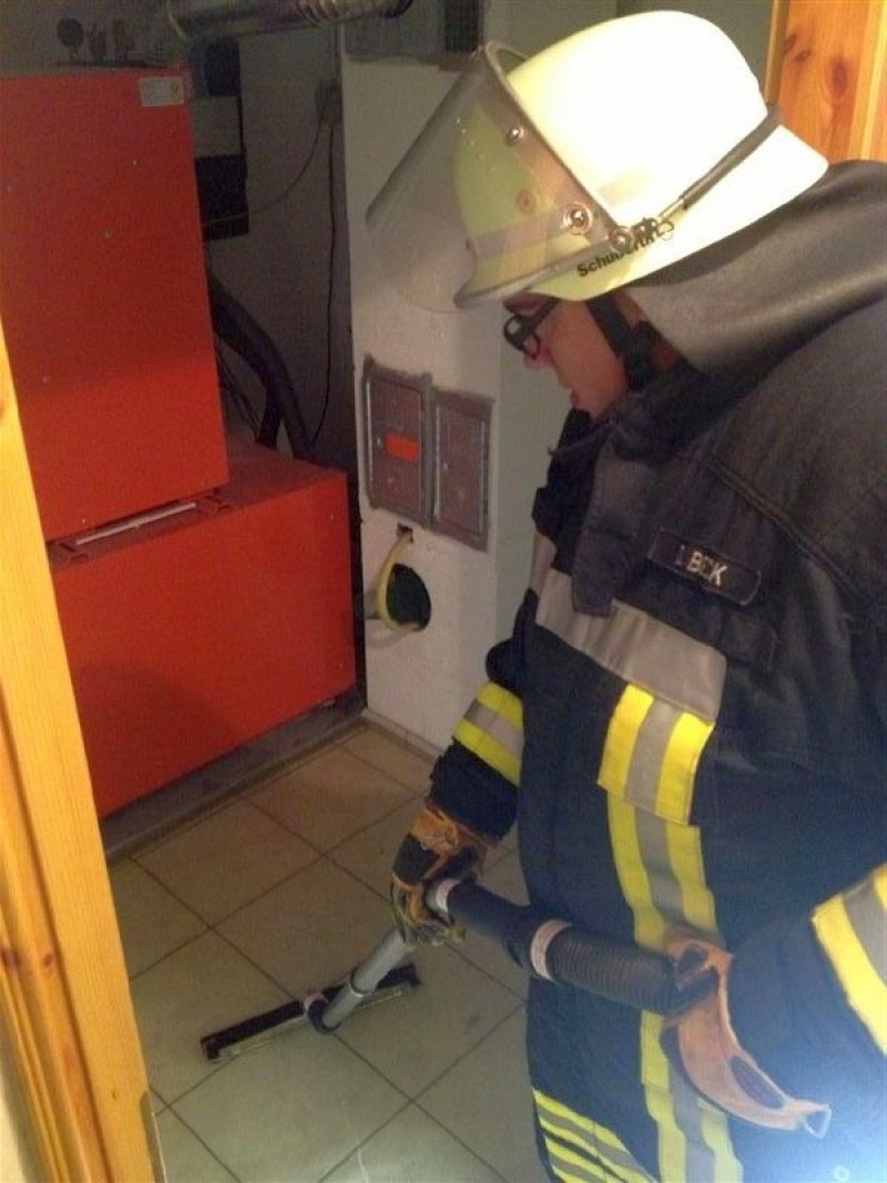 Am Donnerstag wurde die Feuerwehr Asperg mit dem Einsatzstichwort „Wasser in Gebäude“ in die Eglosheimer Straße alarmiert. Bewohner einer Doppelhaushälfte meldeten über Notruf 112 Wassereinbruch durch die Wand des Nachbargebäudes. Nach Erkundung durch den Einsatzleiter stellte sich heraus, dass im Heizraum des vorderen Gebäudes rund 10cm hoch Wasser stand. Durch die Häusertrennwand drang Wasser in das Nachbargebäude. Das Wasser wurde mittels Wassersauger durch die Einsatzkräfte der Feuerwehr abgepumpt. Nach umfangreicher Erkundung konnte ein technischer defekt im Wasserleitungssystem ausgeschlossen werden. Ebenfalls konnte ein Defekt an der Heizung ausgeschlossen werden. Seit wann das Wasser bereits im Heizraum stand konnte abschließend nicht geklärt werden. Die Einsatzstelle wurde an die Bewohner übergeben.