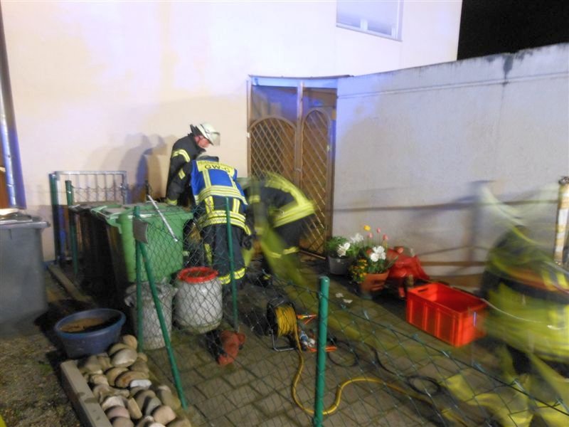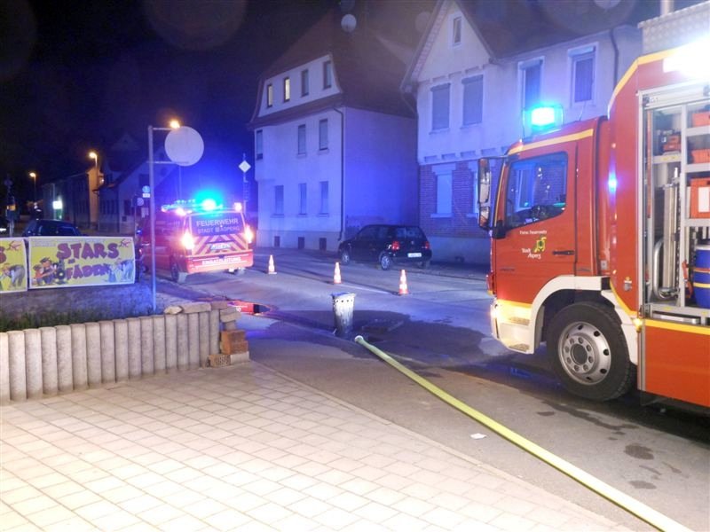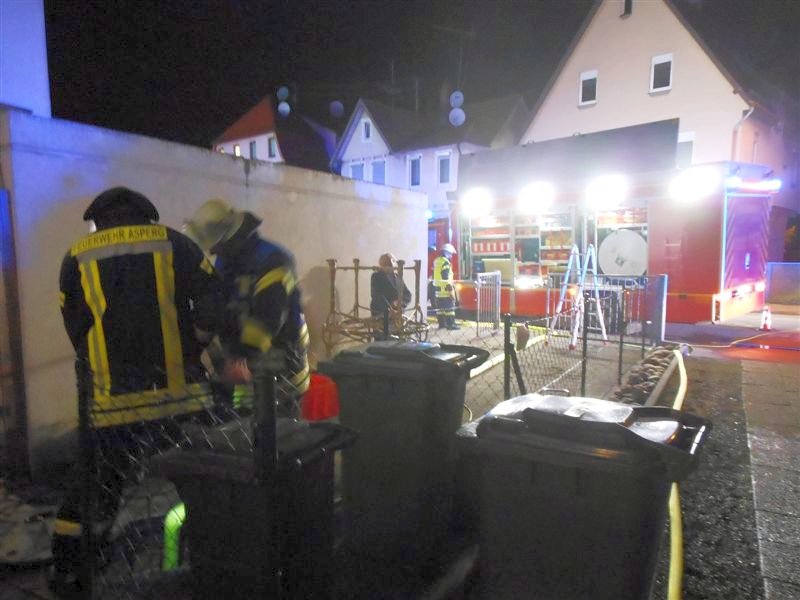 Nur wenige Stunde nach dem ersten Einsatz wurde die Feuerwehr Asperg erneut zu demselben Doppelhaus wie bereits am Mittag alarmiert. Erneut stand Wasser im Heizraum. Das Wasser wurde mittels Wassersauger durch die Einsatzkräfte der Feuerwehr abgepumpt. Ebenfalls wurde die Polizei zur Einsatzstelle angefordert. Befragungen der Bewohner ergaben nun, dass das Grundstück über einen Grundwassersumpf verfügt. Weiter kam heraus, dass der Grundwasserspiegel in diesem Gebiet sehr niedrig ist. Das Gebäude selber verfügt über keine baulichen Vorkehrungen hinsichtlich Grundwasserschutzes. Diese Informationen wurden bei dem Einsatz am Mittag von den Bewohnern nicht an die Feuerwehr weiter gegeben. Nähere Untersuchungen des Pumpensumpfs ergaben, dass eine Pumpe durch die Bewohner installiert worden ist, um das Grundwasser in die öffentliche Kanalisation abzupumpen. Diese Pumpe war ohne Funktion. Das Grundwasser stieg daher an und drang durch die Bodenplatte des Doppelhauses. Die Polizei forderte einen Wassernotdienst an, um das Problem zu beheben. Das Umweltamt des Landratsamtes leitete Ermittlungen zur Grundwassereinleitung ein.