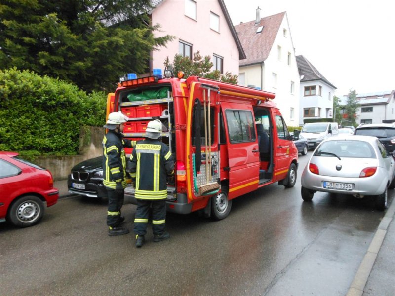 Am Freitag wurde die Feuerwehr Asperg während der Aufbauarbeiten zum „Tag der offenen Tür“ in die Karlsstraße alarmiert. Über Notruf 112 wurde nach starken Regenfällen ein mit Wasser vollgelaufener Keller gemeldet. Das Wasser stand in dem betroffenen Keller rund 15cm hoch auf einer Fläche von knapp 20m². Das Wasser wurde mittels Wassersauger durch die Einsatzkräfte der Feuerwehr Asperg abgepumpt. Im Anschluss wurde die Einsatzstelle an den Hausbesitzer übergeben.