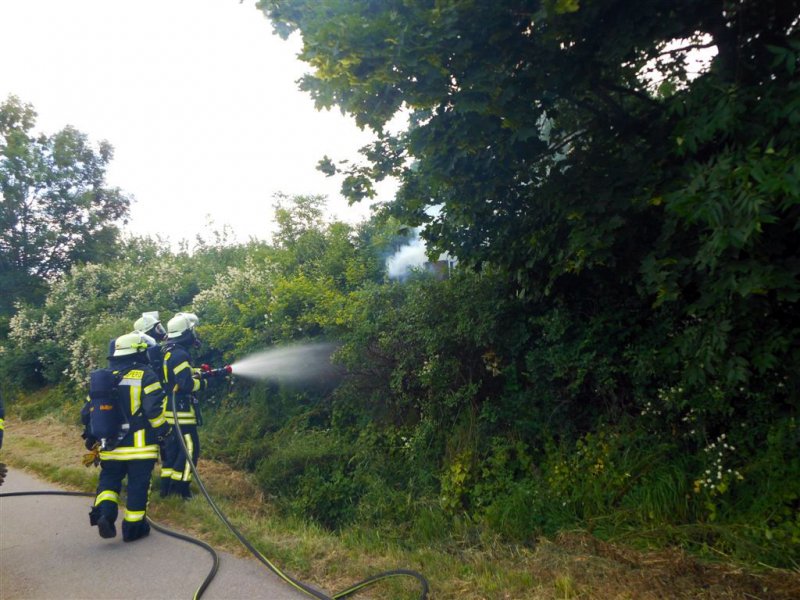 Am Freitag wurde die Feuerwehr Asperg zu einem Gartengrundstück in die Markgröninger Straße alarmiert. Ein aufmerksamer Verkehrsteilnehmer meldete Feuer, auf dem Gelände eines Gartengrundstücks, über den Notruf 112. Bei Eintreffen der ersten Einsatzkräfte an der Einsatzstelle stellte sich heraus, dass ein Zaun, teile einer Hecke und ein kleinerer Holzanbau in Flammen stand. Die umgehend eingeleitete Brandbekämpfung zeigte schnell Wirkung. Den Einsatzkräften der Feuerwehr gelang es eine Brandausbreitung zu verhindern. Die Einsatzstelle wurde abschließend mittels Wärmebildkamera auf Glutnester kontrolliert und der Polizei übergeben. Die Polizei leitete Ermittlungen zum Brandhergang ein.