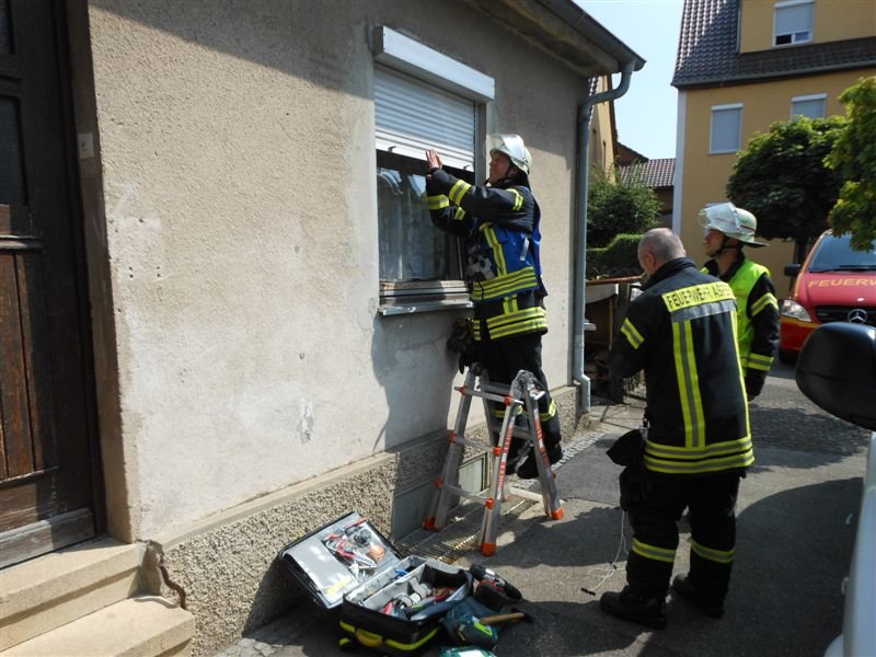 Am Sonntag wurde die Feuerwehr Asperg zu einer Notfalltüröffnung in die Schäferstraße alarmiert. Bürger meldeten über Notruf 112 Hilferufe aus einem Einfamilienhaus. Da die Bewohnerin die Türe nicht selber öffnen konnte, verschafften sich die Einsatzkräfte der Feuerwehr mittels Spezialwerkzeug und einer Leiter, Zugang über ein gekipptes Fenster im Erdgeschoss. Die Bewohnerin wurde in einer hilflosen Lage im Haus angetroffen und umgehend vom Rettungsdienst medizinisch versorgt. Sie wurde zur weiteren Behandlung in ein Krankenhaus eingeliefert.