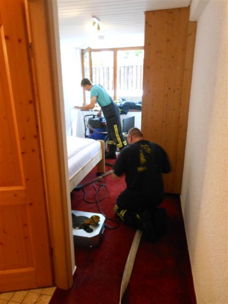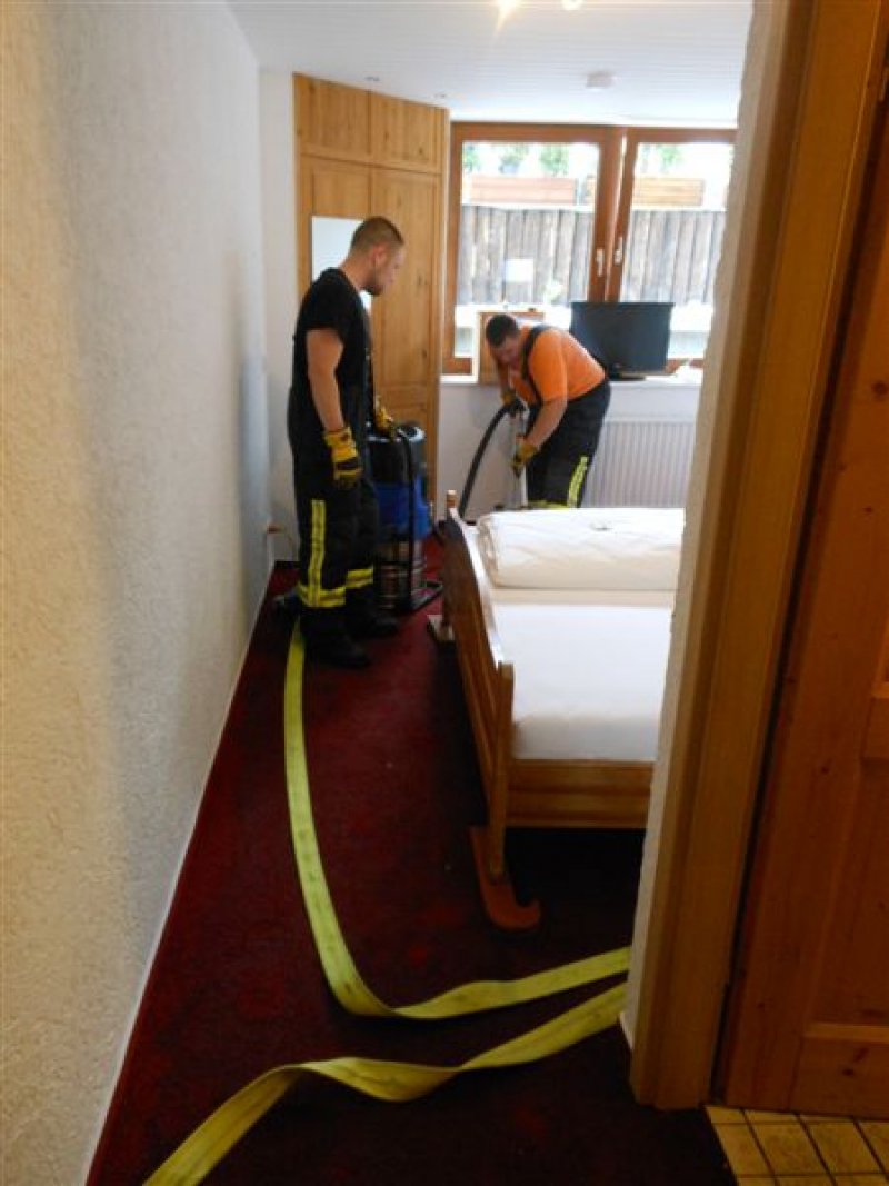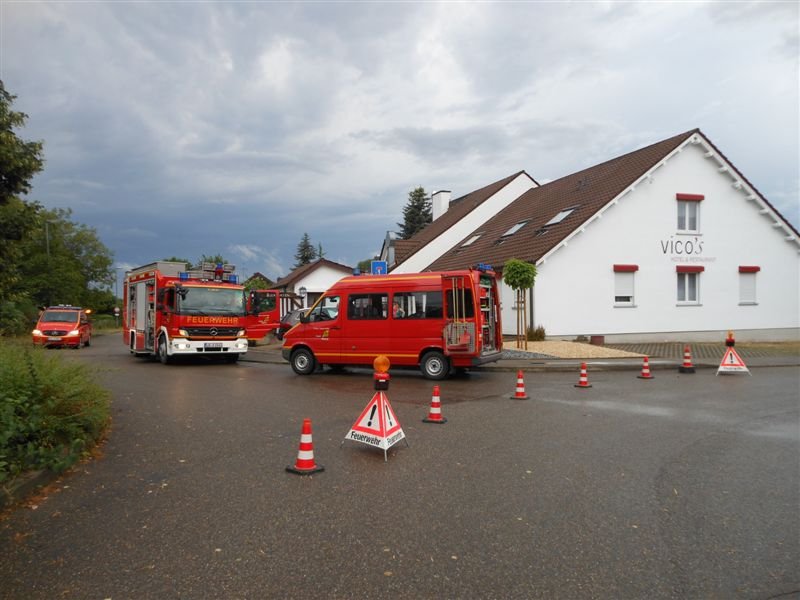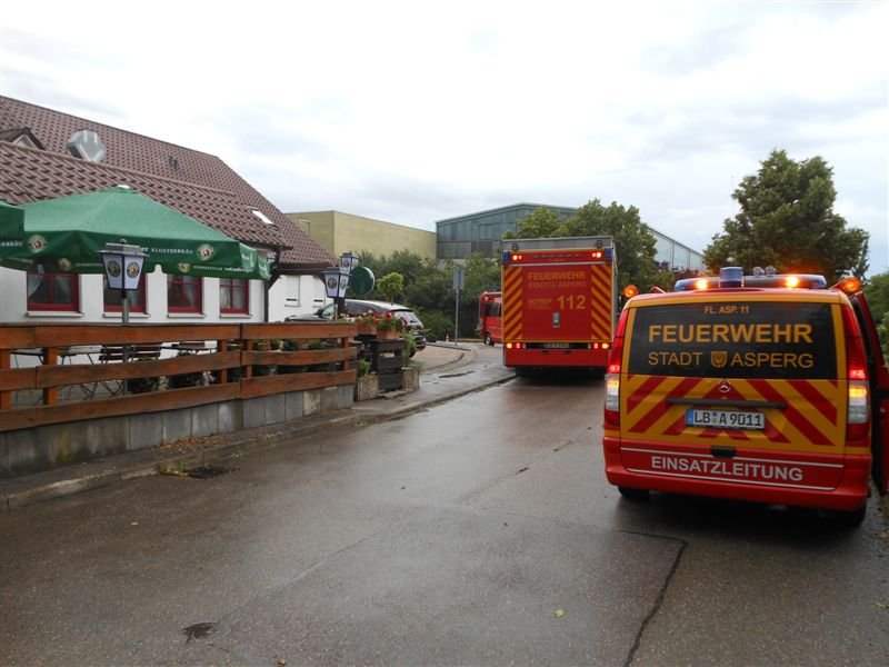 Nach einem starken Unwetter wurde die Feuerwehr Asperg von der Leitstelle Ludwigsburg in die Gartenstraße alarmiert. Über Notruf 112 wurde Wassereinbruch in den Kellerräumen eines Hotels gemeldet. Insgesamt liefen zwei Gästezimmer und ein Teil des Flures im Untergeschoss des Hotels mit Wasser voll. Das in die Gästezimmer eingetretene Wasser wurde mittels zweier Wassersauger durch die Feuerwehr abgepumpt. Im Anschluss wurde die Einsatzstelle an die Besitzer übergeben.