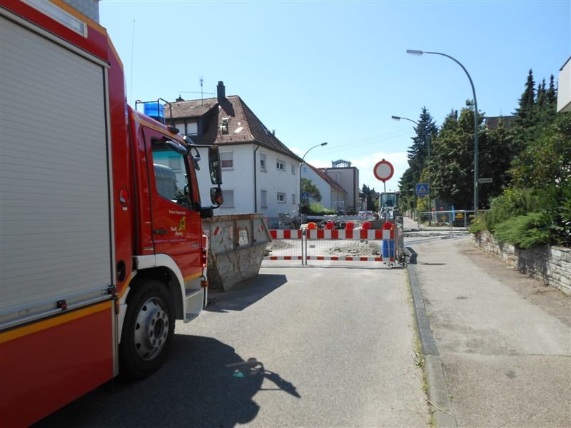 Am Freitag wurde die Feuerwehr Asperg zu einem Wasserrohrbruch in die Lehenstraße Ecke Karlstraße alarmiert. Mehrere Bürger meldeten einen Wasserrohrbruch über Notruf 112. Nach Erkundung durch die Feuerwehr stellte sich heraus, dass es sich um einen Rohrbruch einer Notwasserversorgung in einem Baustellengebiet handelte. Ein massiver Wasseraustritt im Baustellenbereich war die Folge. Umgehend wurde das Wasser durch die Einsatzkräfte der Feuerwehr abgeschiebert. Die Leckage konnte verschlossen werden. Die Einsatzstelle wurde im Anschluss an die Stadtwerke Ludwigsburg übergeben.