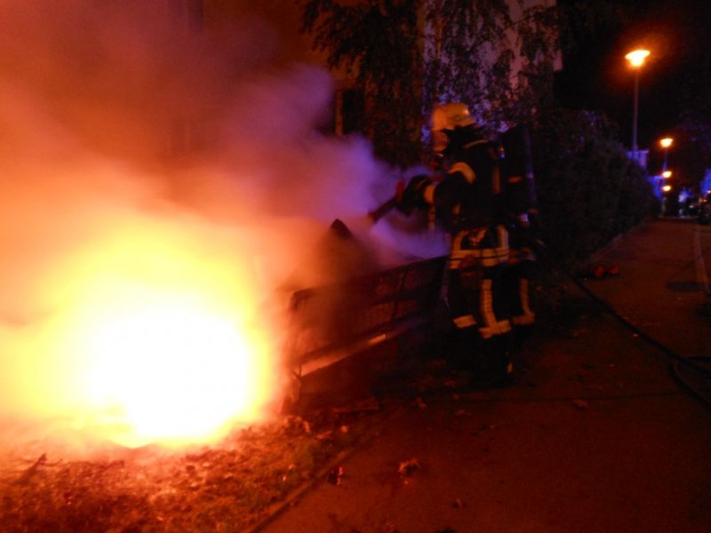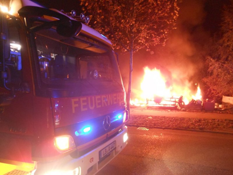 Am Donnerstagabend wurde die Feuerwehr Asperg von der Leitstelle Ludwigsburg in die Südliche Alleenstraße alarmiert. Mehrer Anrufer meldeten über Notruf 112, dass eine größere Ansammlung von Sperrmüll vor einem Einfamilienhaus im Vollbrand stehen würde. Beim Eintreffen der ersten Einsatzkräfte an der Einsatzstelle, drohte das Feuer bereits auf das Einfamilienhaus überzugreifen. Umgehend wurde ein Löschangriff mit zwei C-Rohren von zwei Trupps unter Atemschutz eingeleitet. Zusätzlich wurde eine Riegelstellung zum gefährdeten Einfamilienhaus aufgebaut. Der Feuerwehr gelang es im weiteren Einsatzverlauf ein übergreifen der Flammen auf das Einfamilienhaus zu verhindern. Zur Kontrolle der Hausfasade kamen zwei Wärmebildkameras zum Einsatz. Es wurden keine Auffälligkeiten festgestellt. An der komplett verbrannten Sperrmüllansammlung fanden umfangreiche Nachlöscharbeiten statt. Die Polizei leitete Ermittlungen zum Brandhergang ein. Ebenfalls vor Ort war der Rettungsdienst mit einem Fahrzeug in Bereitstellung.