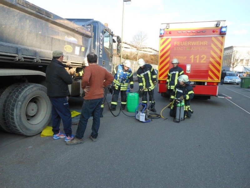 Am Dienstag wurde die Feuerwehr Asperg in die Eberhardtstraße alarmiert. Aufgrund einer Undichtigkeit lief Kraftstoff aus dem Tank eines LKW aus. Der bereits ausgelaufene Kraftstoff wurde mittels Bindemittel von den Einsatzkräften der Feuerwehr aufgenommen. Der restliche Kraftstoff wurde mittels Kraftstoffumfüllpumpe aus dem Tank in einen Auffangbehälter umgepumpt. Die Einsatzstelle wurde abschließend an den Fahrzeughalter und die Polizei übergeben.