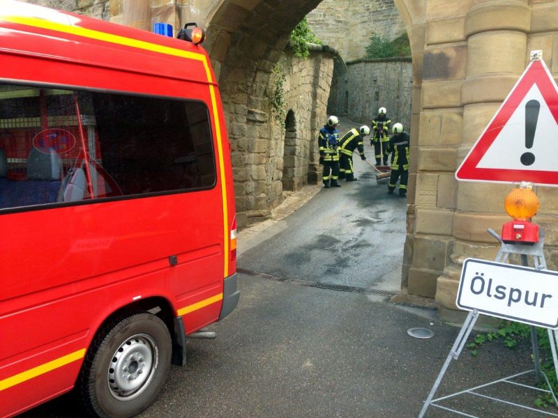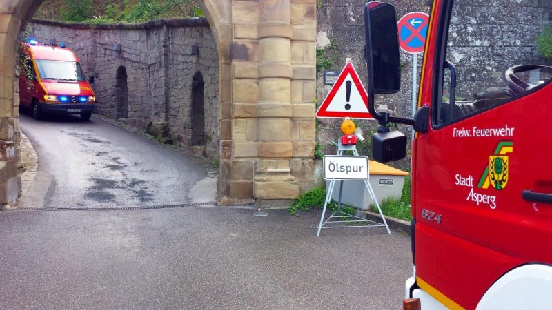 Ölspur im Bereich der Zufahrt zum Justizvollzugskrankenhaus. Anforderung durch die Justizvollzugsanstalt Hohenasperg.