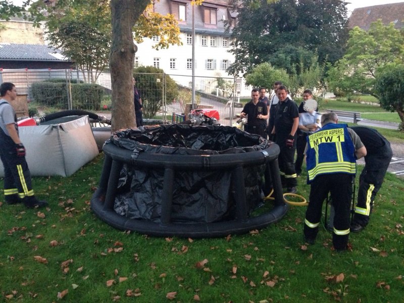 Aufgrund eines Rohrbruchs kam es am Dienstag zum Totalausfall der Löschwasserversorgung des Justizvollzugskrankenhaus Hohenasperg. Mehrer Löschwasserbehälter und ein Wasserförderungs-modul wurden im Rahmen der Überlandhilfe von der Feuerwehr Walheim angefordert und durch die Feuerwehr im Innenhof des Justizvollzugskrankenhaus befüllt. Zudem wurde ein Löschwasserbehälter mit 408m³ Wasser ebenfalls befüllt. Hierzu mussten die am Löschwasserbehälter aktuell laufenden Revisionsarbeiten eingestellt werden. Der Einsatz zog sich über mehrere Stunden. Ein Bild vor Ort machte sich Bürgermeister Storer.