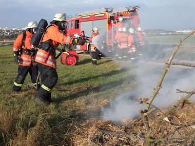 Beim Eintreffen der Feuerwehr brannte ein kleiner Haufen Holz. Er wurde durch die Feuerwehr mit einem Trupp unter Atemschutz durch den Schnellangriff-Wasser abgelöscht.