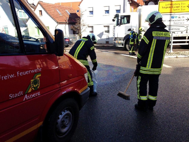 Am Montag wurde die Feuerwehr Asperg zur Beseitigung einer Dieselspur in die Möglinger Straße alarmiert. Die Dieselspur erstreckte sich über eine Länge von rund 800 Meter und wurde mittels Bindemittel durch die Einsatzkräfte der Feuerwehr abgestreut.