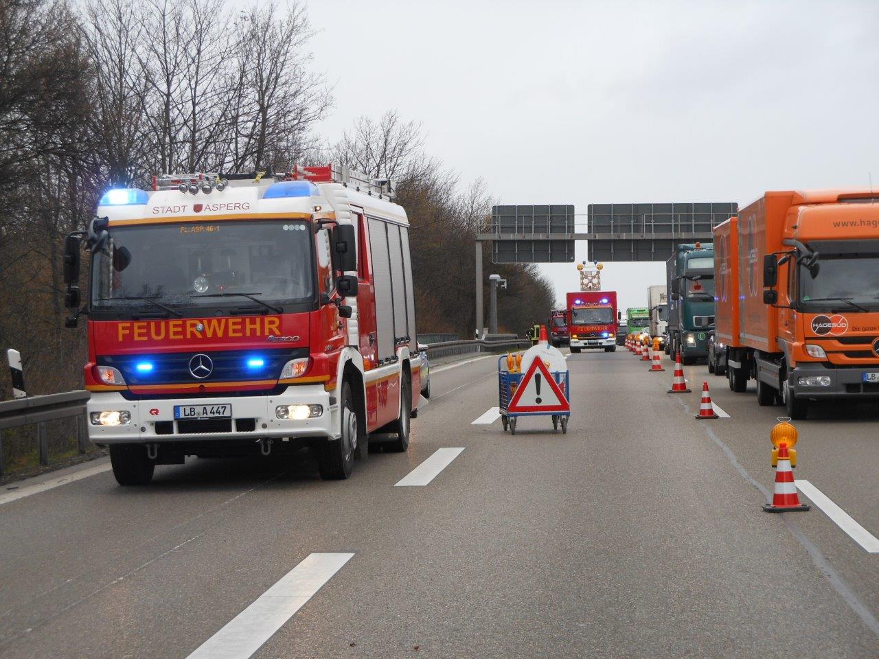 Am Dienstag wurde die Feuerwehr Asperg gemeinsam mit der Feuerwehr Möglingen auf die Bundesautobahn A81 alarmiert. Auf dem Streckenabschnitt Ludwigsburg Nord in Fahrtrichtung Stuttgart war ein Baum umgestürzt und ragte auf die Fahrbahn. Ein LKW konnte nicht mehr rechtzeitig bremsen und kollidierte mit dem Baum. Der Fahrer blieb unverletzt. Der Baum wurde durch die Einsatzkräfte der Feuerwehr mittels Motokettensäge zerkleinert und von der Fahrbahn entfernt. Während des Einsatzes mussten in Absprache mit der Polizei zwei Fahrstreifen gesperrt werden.
