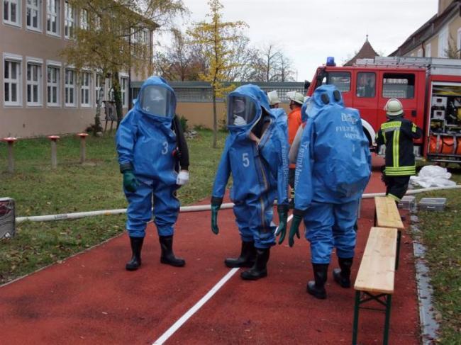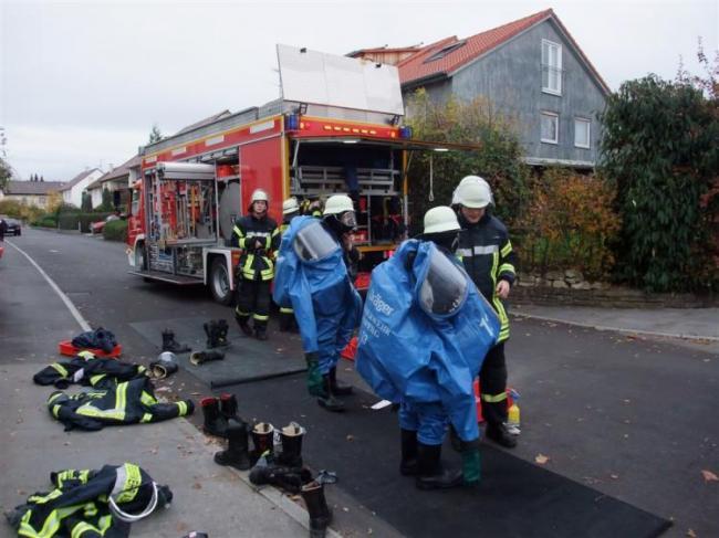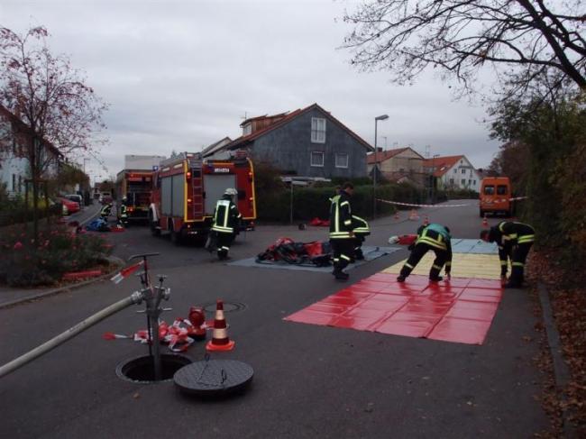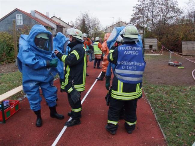 Am Freitag wurde die Feuerwehr Asperg mit dem Gefahrgutzug und dem Einsatzstichwort „Chlorgasaustritt“ zur Ludwig-Heyd-Schule in der Graf-Hartmann-Straße in Markgröningen alarmiert. In einem Technikraum eines zur Schule gehörenden Hallenbad ist aus einer nicht ganz verschlossenen Gasflasche Chlorgas entwichen. Der Chlorgasaustritt wurde bei einem Kontrollgang von drei städtischen Mitarbeitern bemerkt. Alle drei zogen sich Atemwegsreizungen zu und mussten vom Rettungsdienst medizinisch versorgt werden. Einem Trupp unter schweren Chemikalienschutzanzügen gelang es die Flasche dicht zu bekommen. Weitere Trupps unter Atemschutz hielten mit einem Wassersprühstrahl die Dämpfe im Außenbereich nieder. Zwei weitere Trupps unter Chemikalienschutzanzügen transportierten die ca. 60 Kilogramm schwere Chlorgasflasche ins Freie und verluden sie in einen von der Feuerwehr Asperg zur Einsatzstelle gebrachten Bergungsbehälter für defekte Chlorgasflaschen. Anschließend wurde der Bergungsbehälter an eine Spezialfirma zur Entsorgung übergeben. Die Technikräume wurden belüftet. Eine Gefahr für die Schüler und Bewohner bestand zu keinem Zeitpunkt. Vor Ort waren während des Einsatzes die Polizei und der Rettungsdienst mit einem Großaufgebot.