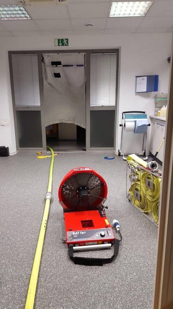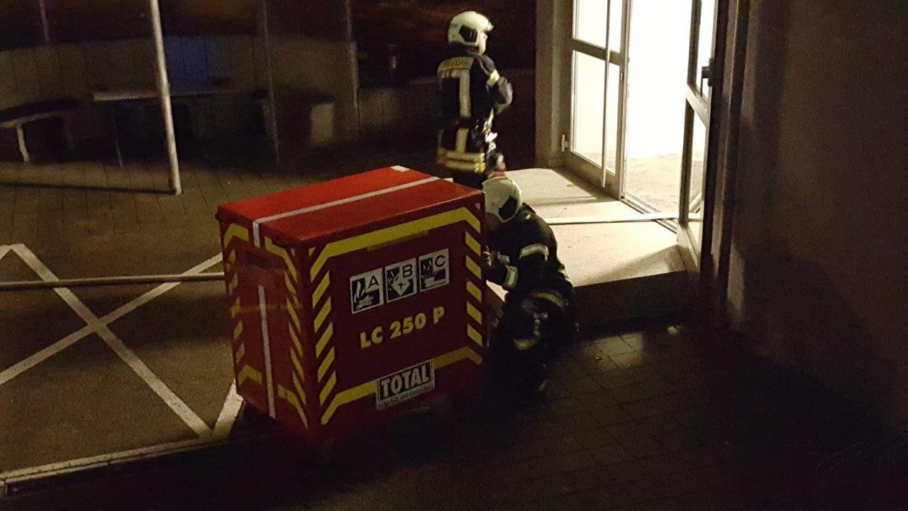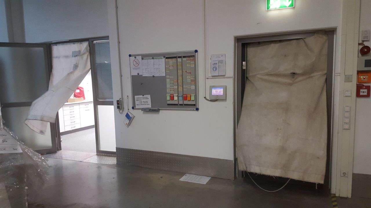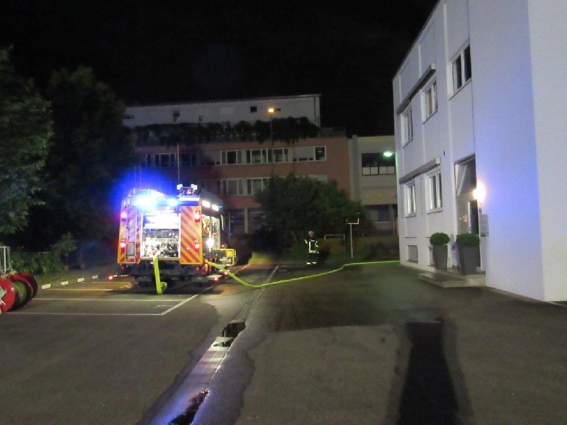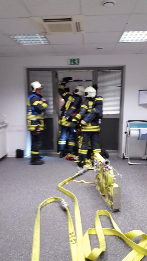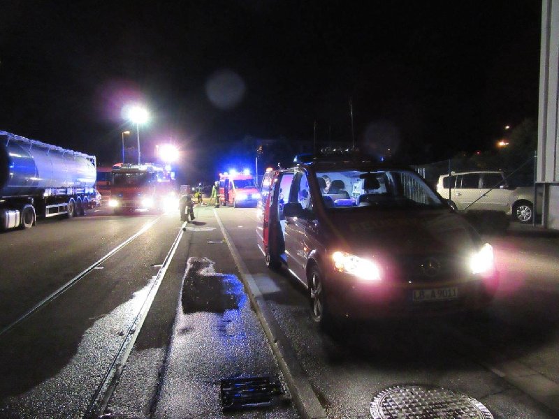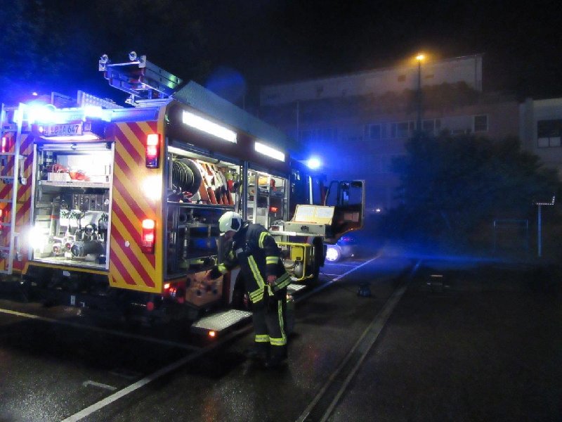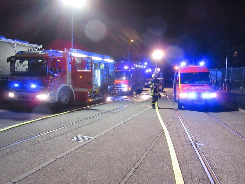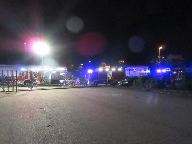Auslösung der automatischen Brandmeldeanlage einer Firma für chemische Produkte. Nach Erkundung wurde in einer Produktionshalle offenes Feuer im Bereich einer Maschine lokalisiert. Umgehend wurde ein umfangreicher Löscheinsatz von mehreren Trupps unter Atemschutz eingeleitet. Hier kamen neben mehreren C-Rohren auch der Pulverlöschcontainer zum Einsatz. Zur Belüftung der Halle kamen insgesamt 4 Hochleistungslüfter zum Einsatz.