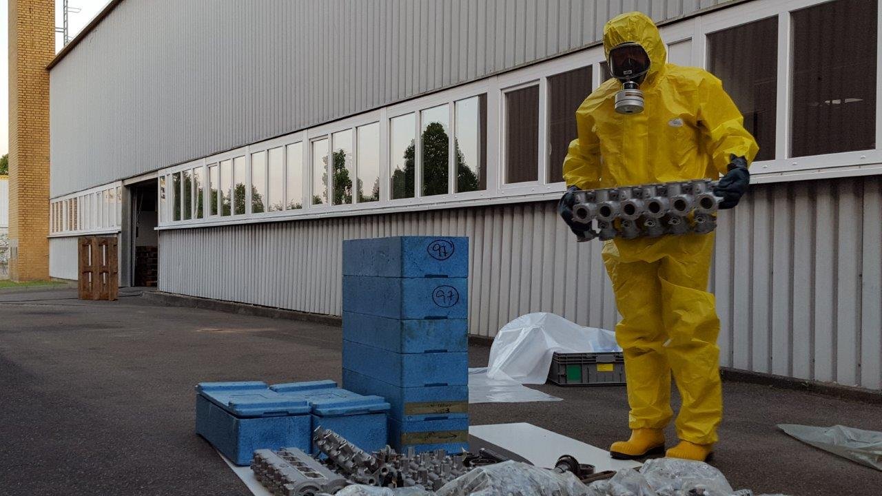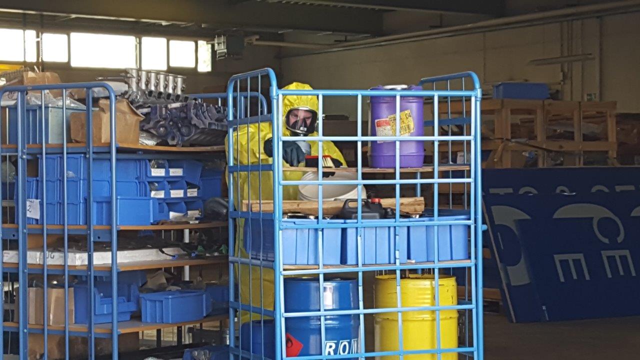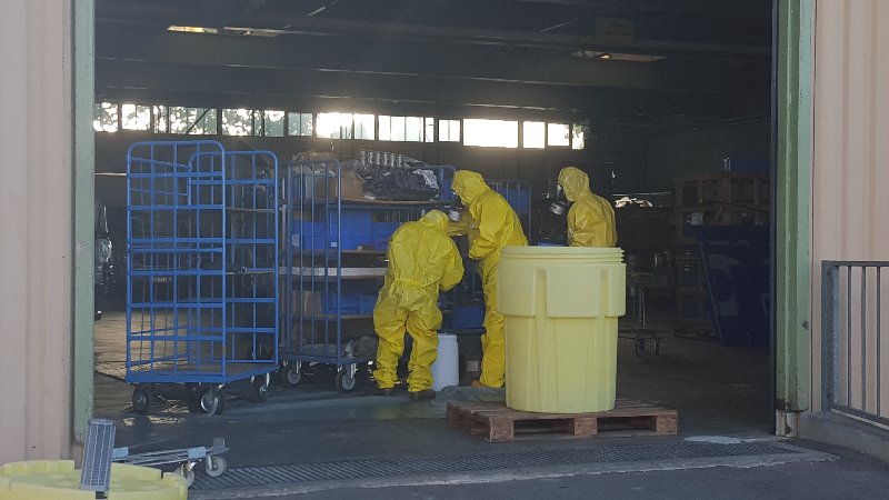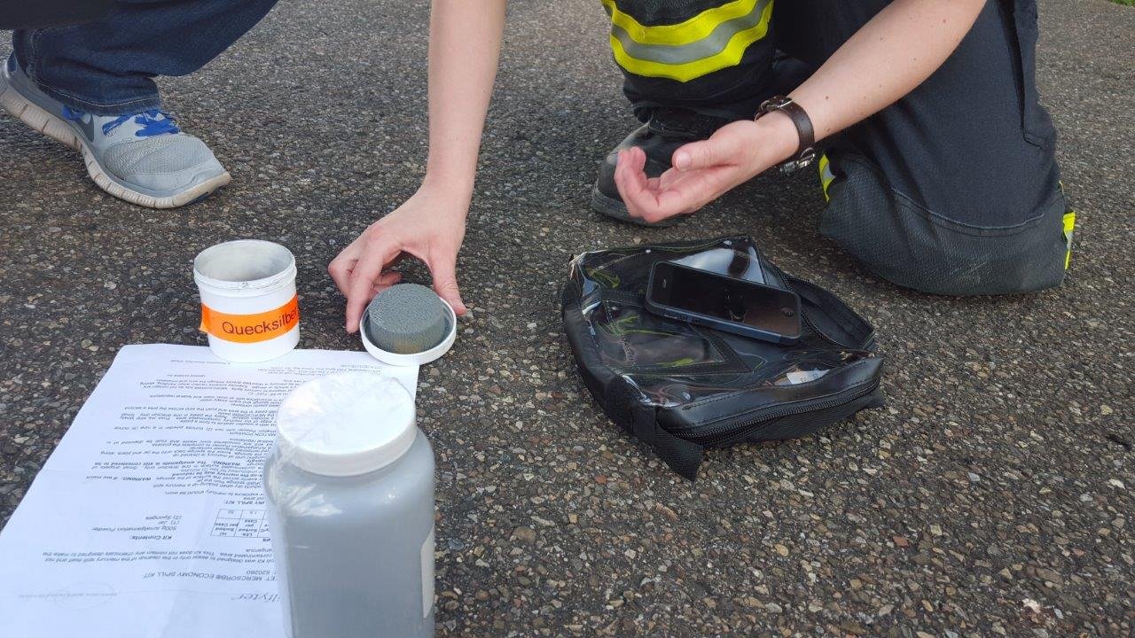Austritt von Quecksilber in einer Firma. Anforderung des Quecksilber Notfallset der Feuerwehr Asperg.