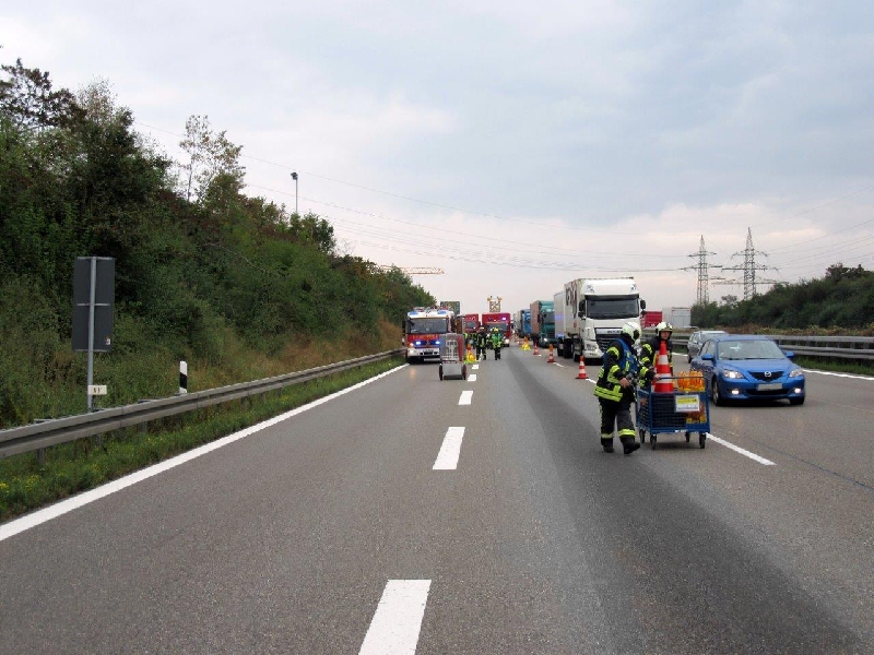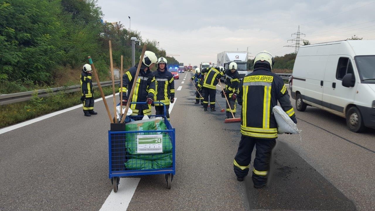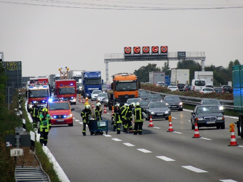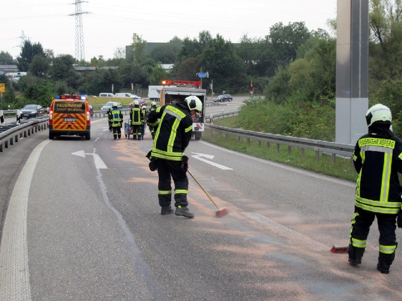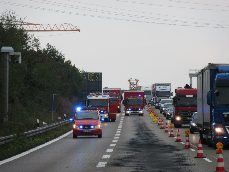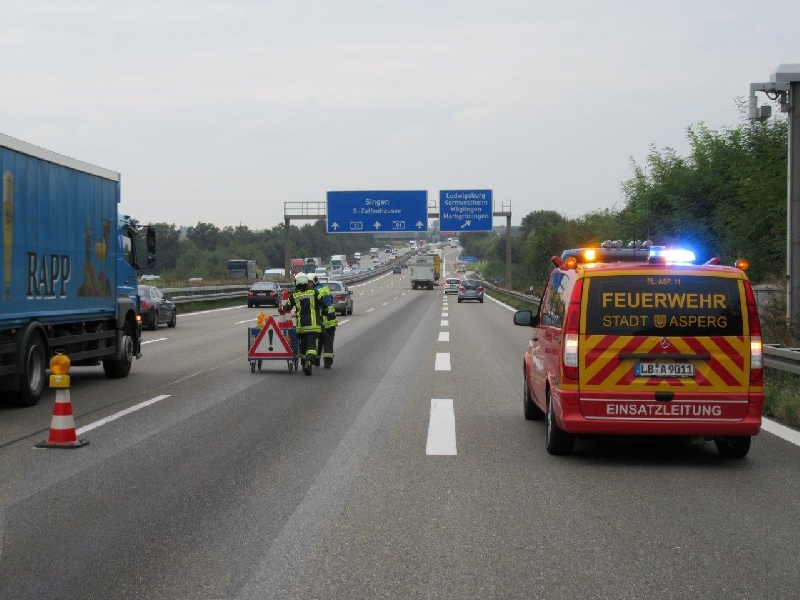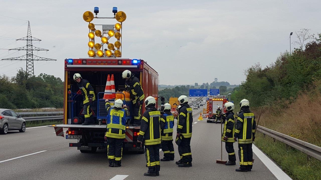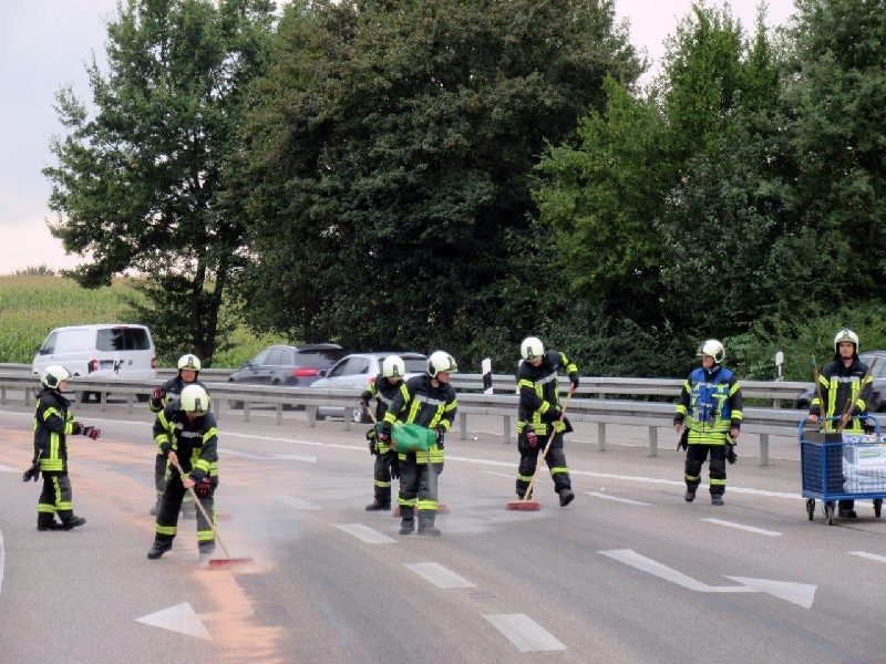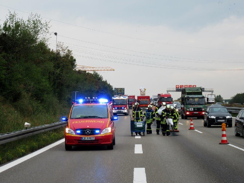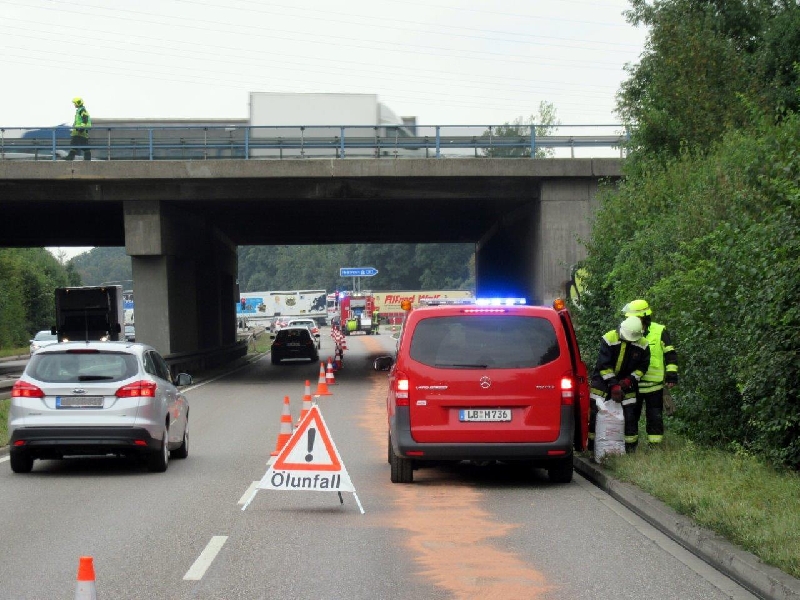 Ein LKW hatte sich die komplette Ölwanne beim Überfahren eines Gegenstandes abgerissen. Massive Verunreinigung der Autobahn und des Abfahrtsbereiches Ludwigsburg Süd durch ausgelaufenes Motorenöl. Die Autobahnabfahrt Ludwigsburg Süd wurde teilweise durch die Polizei voll gesperrt.