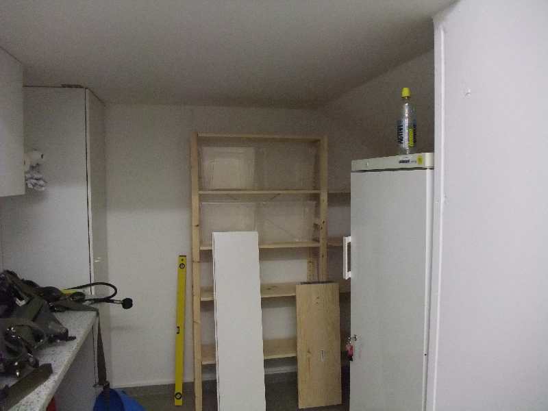 In dieser Zeit hatte das Küchen-Team mehrere Regale und eine Ablage zusammengebaut und montiert. Nachdem die Regale am richtigen Ort standen, wurde gleich eingeräumt.