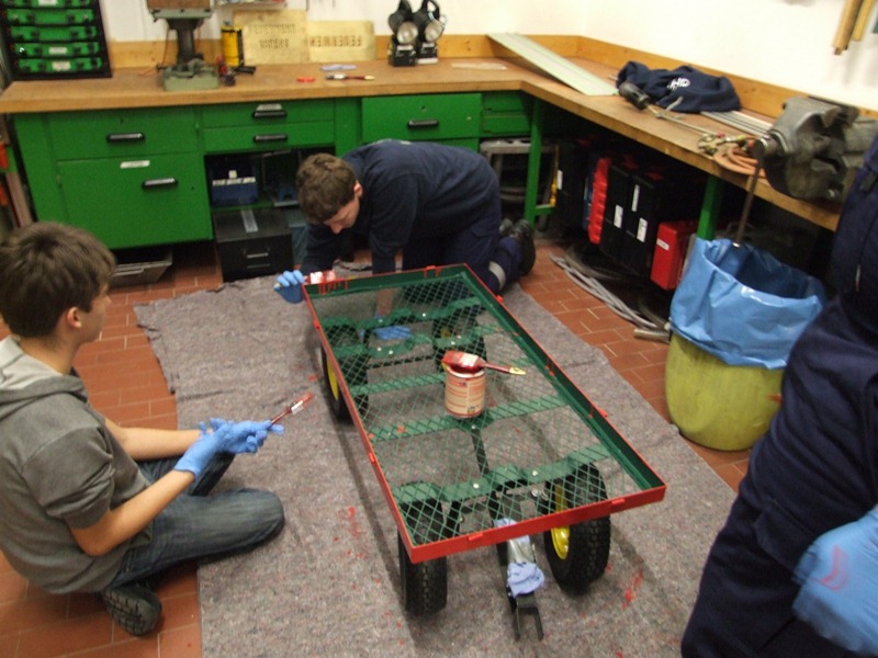 Das neue Großprojekt wurde am 23. Januar 2013 gestartet. Dabei begannen wir unser eigenes Jugendfeuerwehr-Fahrzeug zu bauen. Im Dezember letzten Jahres machten wir uns schon einige Gedanken über das Aussehen unseres eigenen Fahrzeuges. Da es aber handlich bleiben sollte, waren die Vorstellungen eines Kettcars schnell zerplatzt. Dafür wurden uns ein Bollerwagen, Holzplatten und Farbe zur Verfügung gestellt.