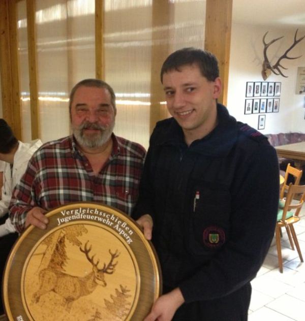 Trotz unserer Niederlage gab es dann doch noch Freudestrahlen in unseren Gesichtern: Denn der Schützenclub Asperg stiftete uns unsere eigene Jugendfeuerwehrschützenscheibe! Nochmals vielen Dank an den Schützenclub für dieses tolle Geschenk! Noch im Schützenhaus einigten wir uns, dass die Gewinner der Ausbilder auf die rechte Seite der Jugendfeuerwehrschützenscheibe kommen und wir Jugendlichen auf die linke Seite. Jetzt können wir jedes Jahr unser eigenes Schützenturnier mit unserer eigenen Schützenscheibe ausüben. Darauf freuen wir uns schon alle, wer im nächsten Jahr auf der Schützenscheibe stehen wird.