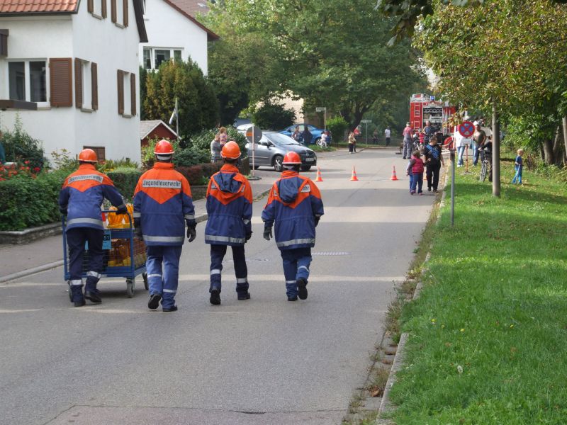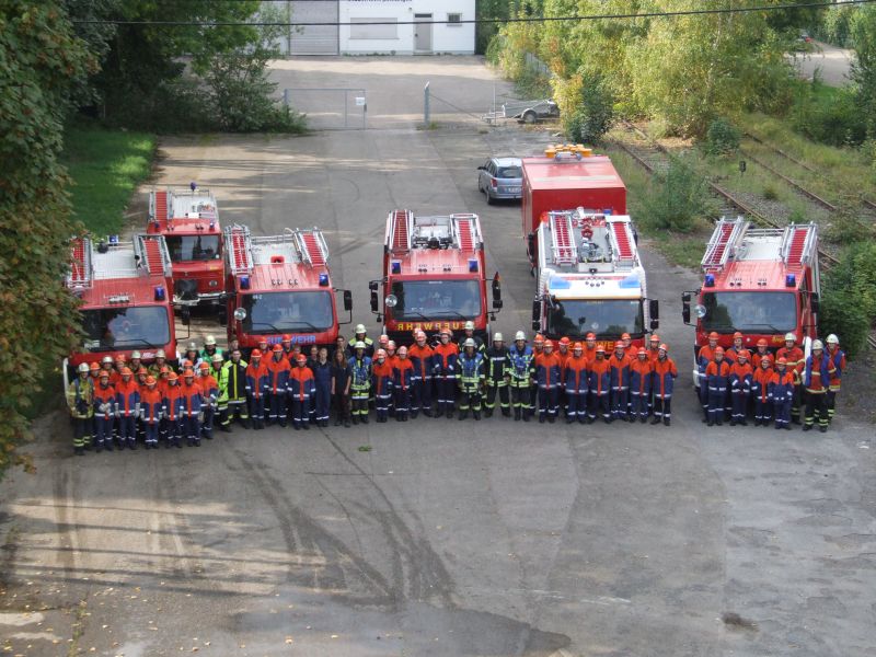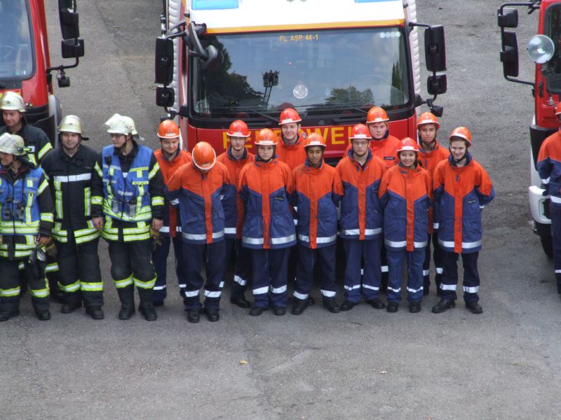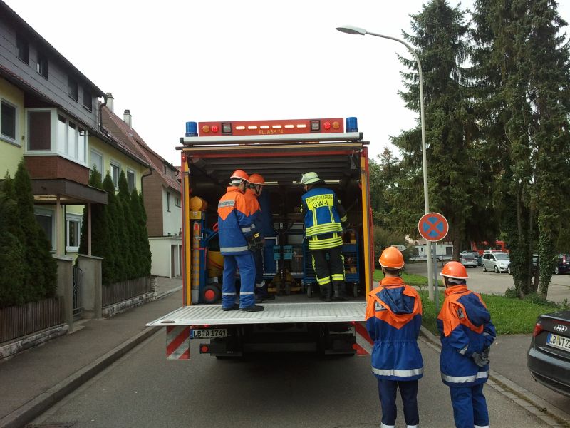 Wir trafen uns gegen 14:00 Uhr im Asperger Feuerwehrgerätehaus und fuhren von dort aus ins Möglinger Feuerwehrmagazin, welches als Bereitstellungsplatz für alle teilnehmenden Feuerwehren diente. Neben der Asperger Jugendfeuerwehr nahmen die Jugendfeuerwehren aus Möglingen, Tamm, Schwieberdingen und Markgröningen teil.