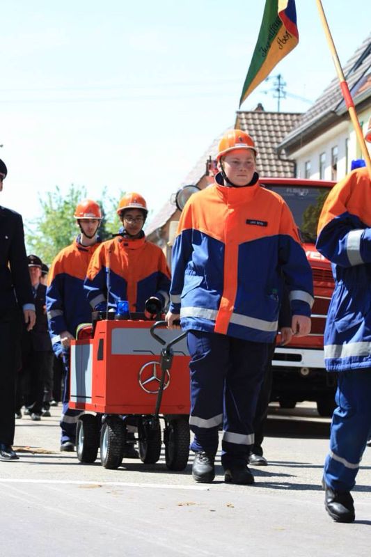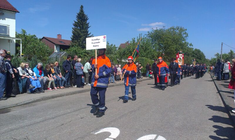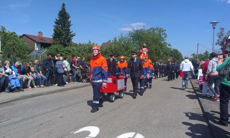 Wir trafen uns um 11.20 Uhr in der Feuerwache Asperg und fuhren gemeinsam mit den Fahrzeugen nach Bönnigheim. Nach ungefähr einer Stunde Fahrzeit haben wir den Zielort erreicht. Dort angekommen trafen sich alle Gruppen im Aufstellungsraum und warteten bis der Umzug anfing. Dieser Tag war ein besonderer Tag da es der 1. Einsatz für unseren Bollerwagen war. Wir liefen ungefähr 2,5 h in,, Reih und Glied,, bis wir dann am Festzelt ankamen. Dort gab es dann etwas zu Essen und was zu Trinken. Bevor das Essen kam standen alle Feuerwehrangehörigen auf, da die Fahnenträger mit Dudelsackmusik einmarschierten. Der Kommandant der Bönnigheimer Feuerwehr und unser Kreisbrandmeister Andi Dorroch hielten noch ihre Reden. Im Anschluss kam dann das Essen. Nach dem Essen blieben wir noch so ungefähr 1-2 h sitzen bis dann wieder der Fahnenausmarsch von statten ging.