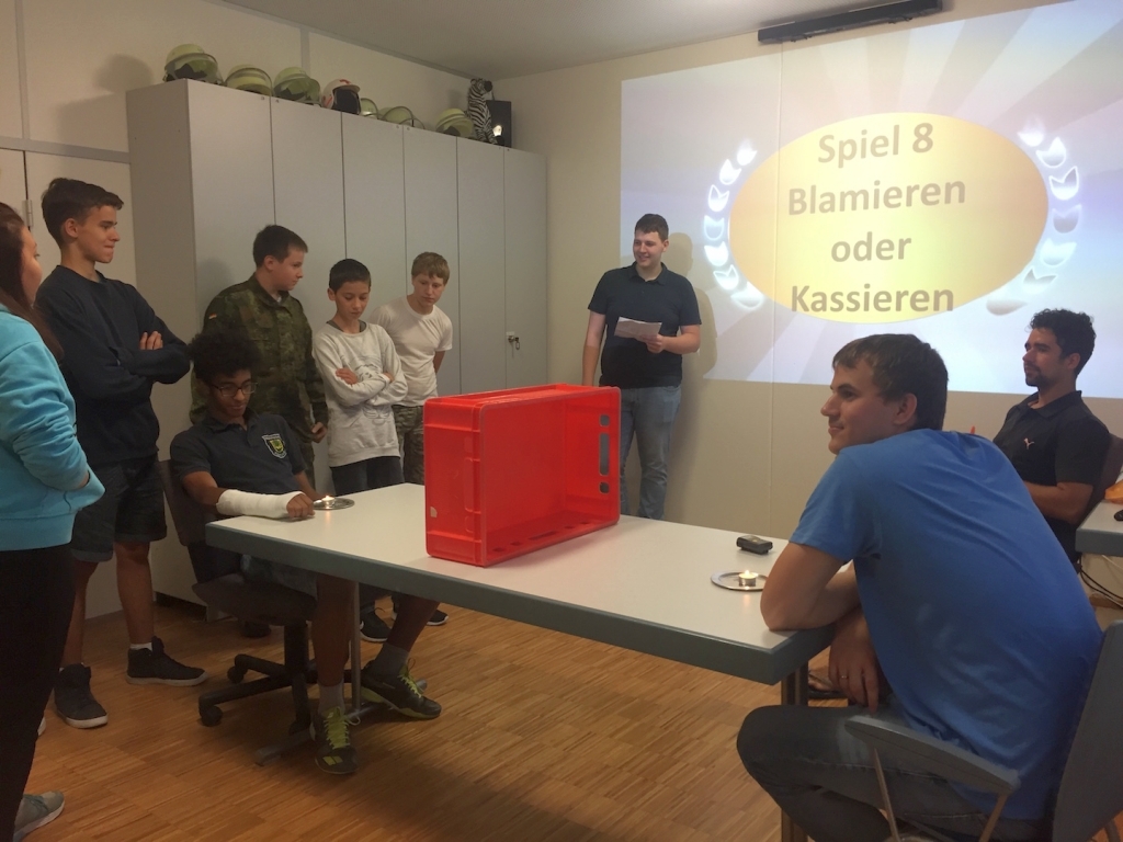Natürlich durfte auch „Blamieren oder Kassieren“ nicht fehlen. Am Ende der Spiele gewann Jugendwart Christopher Pach mit einem knappen Vorsprung gegen die Jugendlichen.