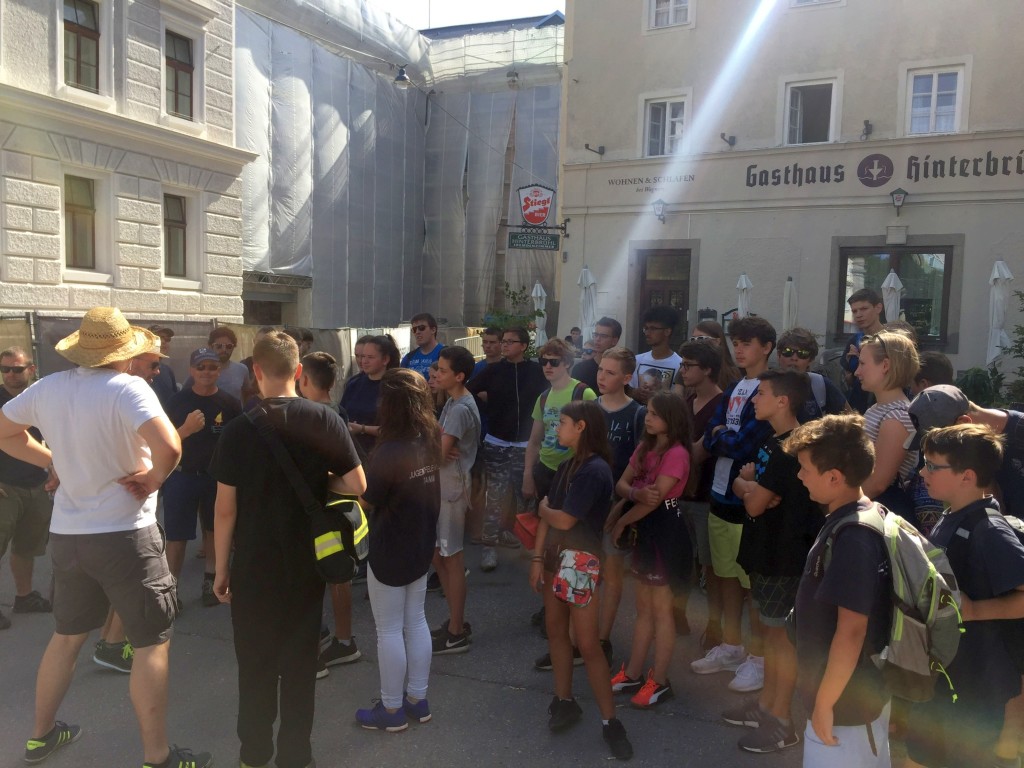 Damit war schon Halbzeit beim Kreiszeltlager und Donnerstags ging es dann mit einer Stadtführung in Salzburg weiter. Roman - so hieß unser Führer - kam selber aus Salzburg. Die Führung ging gute 1,5 Stunden und war sehr spannend. Es wurden die Sehenswürdigkeiten, darunter auch das Geburtshaus von Mozart, erklärt. Nach der Führung entschieden wir uns direkt zurück an den Zeltplatz zu fahren, da die Jugendlichen sich eine Abkühlung wünschten. Diese Abkühlung wurde abends unterbrochen durch die Prüfung für die Jugendflamme Teil 1 und Teil 2, welche unsere Jugendlichen mit Bravour meisterten. Bei der Jugendflamme handelt es sich um ein Abzeichen, vergleichbar mit dem LAZ (Leistungsabzeichen) der Aktiven.