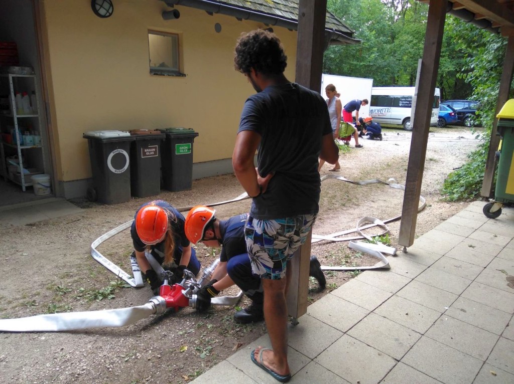 Dienstags ging es dann auf die längste Sommerrodelbahn Österreichs, nach Dürrnberg bei Hallein. Dort fuhren wir mit dem Sessellift bis zum Zinkenstüberl, um dann wieder 2,2 km mit den Schlitten herunter zu düsen. Die Frisuren hielten nicht bei allen unserer Jugendlichen bzw. Betreuern :-). Anschließend haben wir noch die Stadt Hallein besichtigt und die Jugendlichen durften hier noch etwas shoppen gehen. Abends hatten wir noch mit den Ausläufern des Unwetters zu kämpfen, welches über Bayern und Baden-Württemberg gezogen ist. Vorsorglich wurden durch den Kreisjugendfeuerwehrwart Oliver Semmler alle Zelte evakuiert und abgewartet bis sich das Wetter beruhigte.