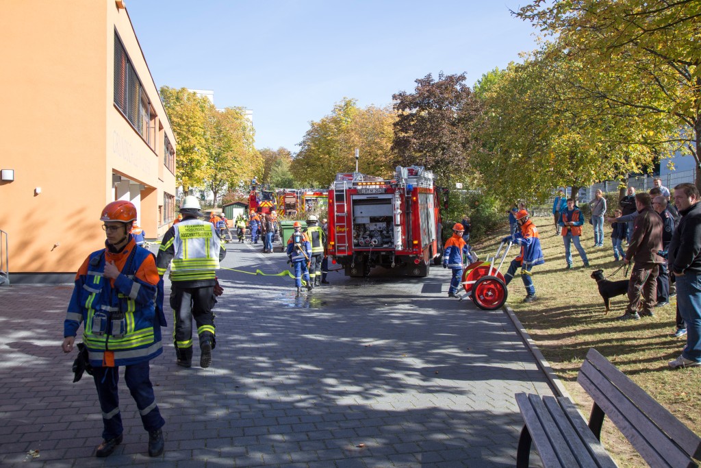 Im Jahr 2018 wurde eine starke Rauchentwicklung in der Grundschule im Löscher in Möglingen bemerkt, woraufhin die Jugendfeuerwehr Möglingen das Objekt anfuhr und bereits auf der Anfahrt die Jugendfeuerwehren aus dem Bezirk nachforderte, da ein Großbrand mit mehreren vermissten Menschen vermutet wurde. Zusammen mit der Markgröninger Drehleiter arbeiteten die Jugendfeuerwehren die verschiedenen Einsatzstellen rund um das Gebäude mit Bravour ab und rettete ca. 15 Personen aus dem mit einer Nebelmaschine verrauchten Gebäude. Alle geretteten sind natürlich Wohlauf und durften auch anschließend bei einem gemeinsamen Vesper im Feuerwehrhaus Möglingen teilnehmen.